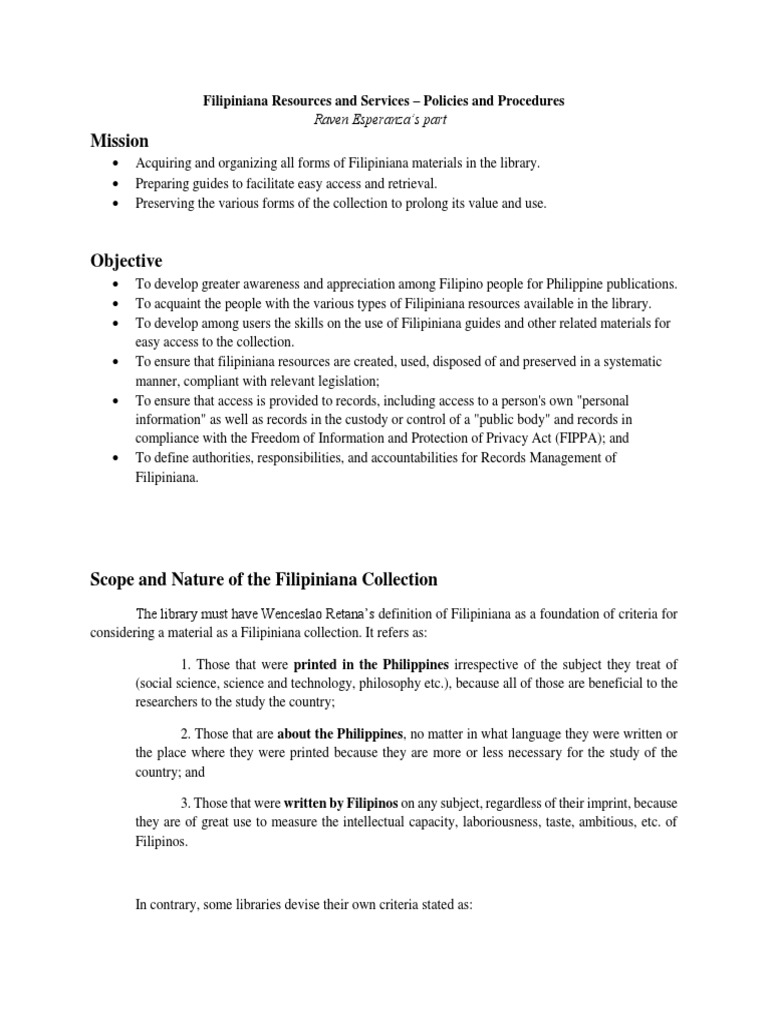 It is an area of the library where hard to find books are reserved for a person on a first come first served basis. The national library of the philippines filipino. Filipiniana in his in developing special library collections filipiniana.