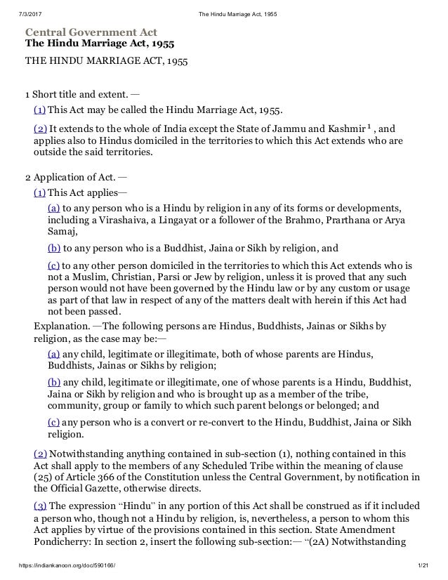 Hindu marriage act 1955 and special marriage act 1954. I was my college topper for five years. 2 it extends to the whole of india except the state of jammu and.